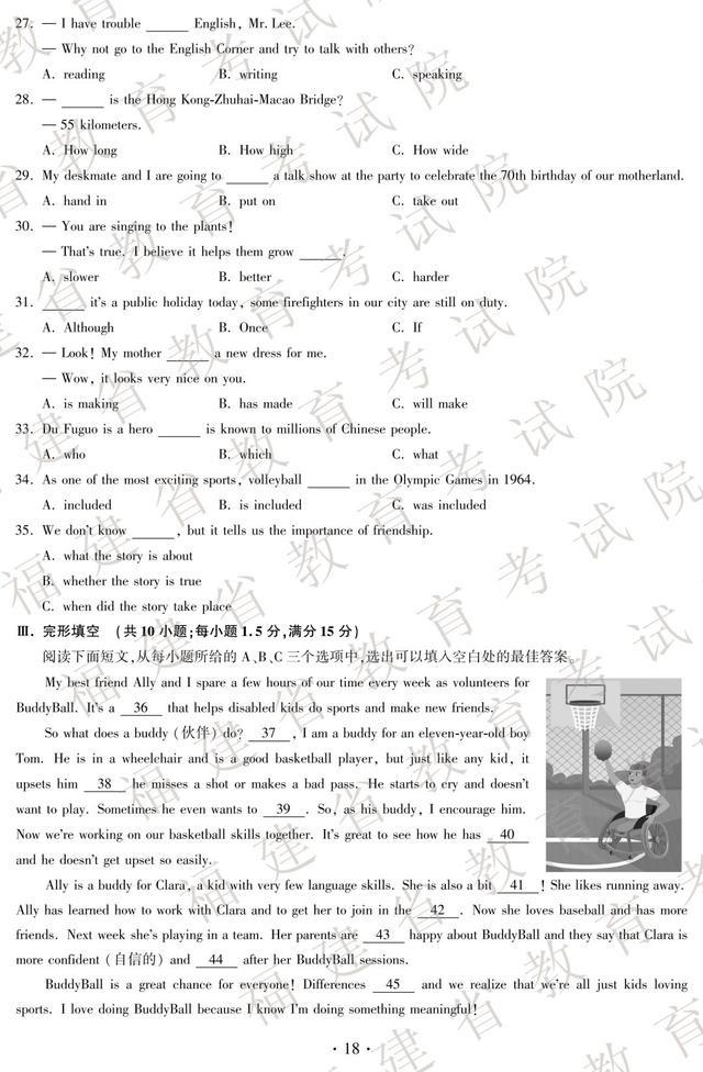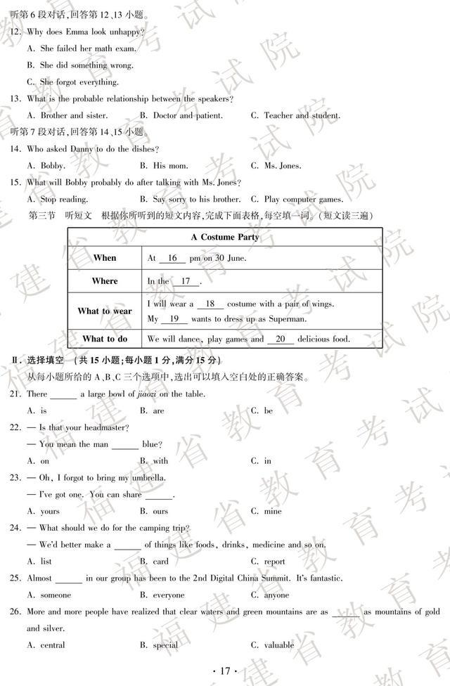 2019年福建南平中考英語(yǔ)科目考試現(xiàn)已結(jié)束,為方便考生及時(shí)估分,中考頻道在本次考試結(jié)束后發(fā)布了“2019年福建南平中考英語(yǔ)試題及答案”僅供考生參考學(xué)習(xí),在此預(yù)祝廣大考生取得優(yōu)異的成績(jī),請(qǐng)繼續(xù)關(guān)注我們!