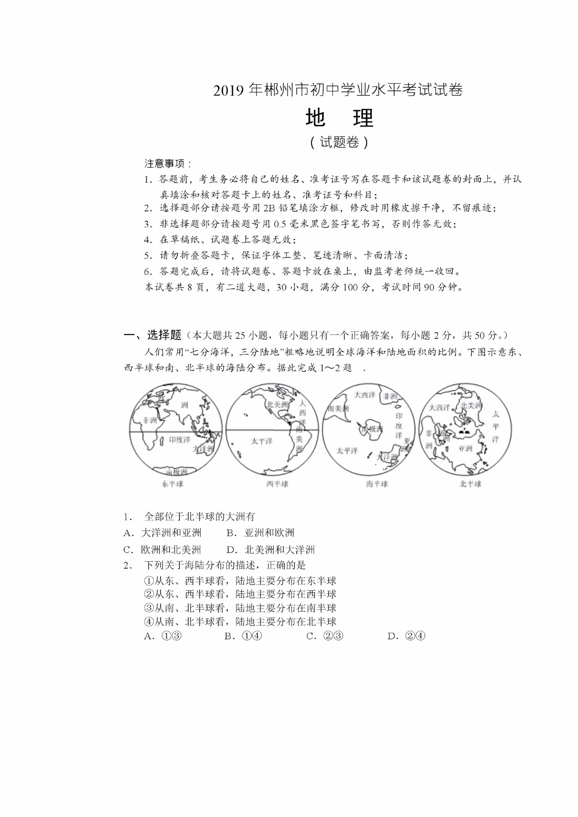 2019年湖南郴州中考地理考試已結(jié)束,中考頻道搜集整理發(fā)布了“2019年湖南郴州中考地理試卷”,僅供考生們參考學(xué)習(xí),小編預(yù)祝大家取得優(yōu)異的成績!