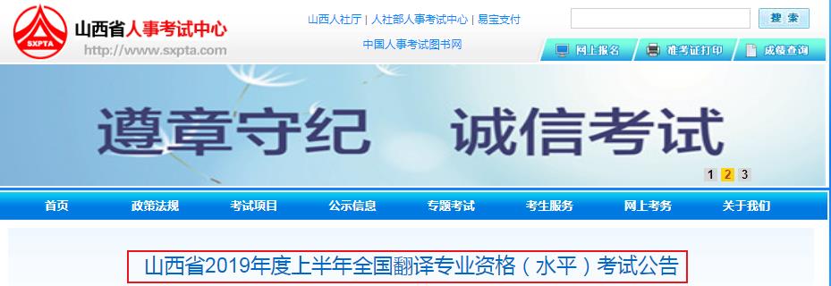 根據(jù)山西省人事考試中心《關(guān)于做好山西省2019年度上半年全國(guó)翻譯專業(yè)資格(水平)考試考務(wù)工作的通知》(晉人考函〔2019〕9號(hào))安排,現(xiàn)將有關(guān)事項(xiàng)公告如下: