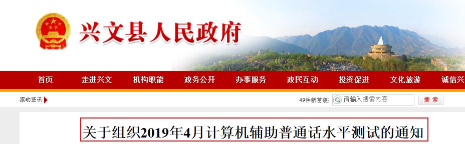 從興文縣人民政府發(fā)布的《2019年4月四川興文縣計算機輔助普通話水平測試通知》得知,2019年4月四川興文縣普通話成績查詢時間及入口已公布,考試一個月后可查成績,具體詳情如下: