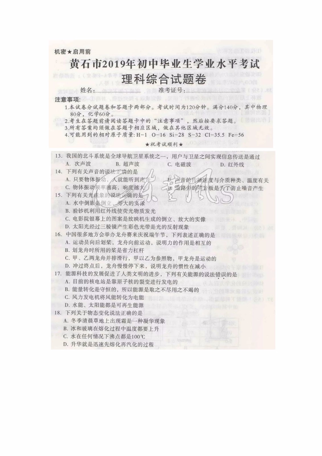 2019年湖北黃石中考物理考試已結(jié)束,中考頻道搜集整理發(fā)布了“2019年湖北黃石中考物理試卷”,僅供考生們參考學(xué)習(xí),小編預(yù)祝大家取得優(yōu)異的成績(jī)!