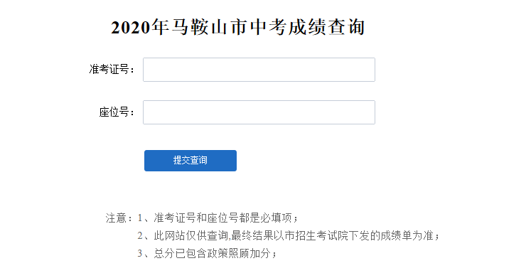 點擊進入>>>2020年安徽馬鞍山中考成績查詢?nèi)肟凇疽验_通】