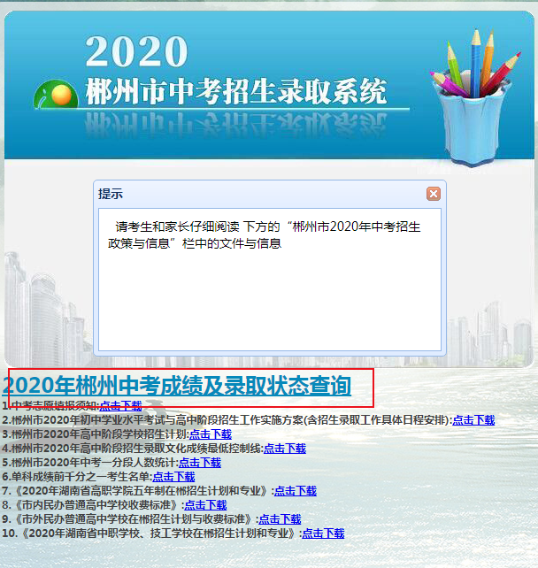 點擊進入>>>2020年湖南郴州中考成績查詢入口【已開通】