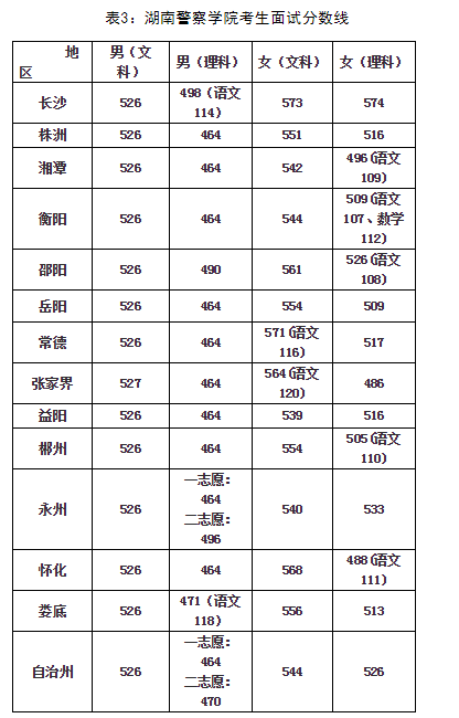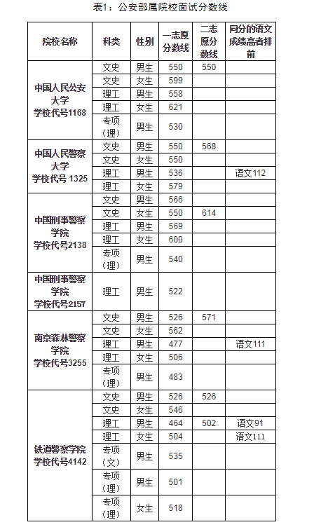 湖南省2020年公安普通高等院校公安專業(yè)面試入圍分數(shù)線詳見表1、表2、表3: