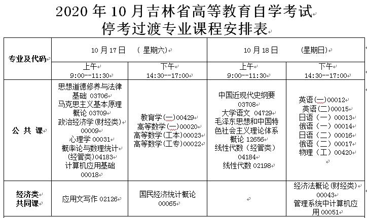點(diǎn)擊查看完整版>>>2020年10月吉林省高等教育自學(xué)考試??歼^渡專業(yè)課程安排表.doc