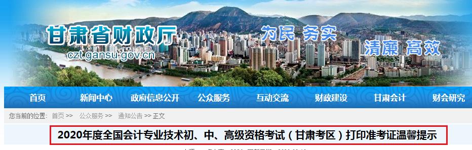 從甘肅省財政廳發(fā)布的《2020年甘肅省會計專業(yè)技術(shù)資格考試打印準考證溫馨提示》得知,2020年甘肅省會計專業(yè)技術(shù)資格考試準考證打印時間為8月15日起至本人參加考試當日止,詳細內(nèi)容如下: