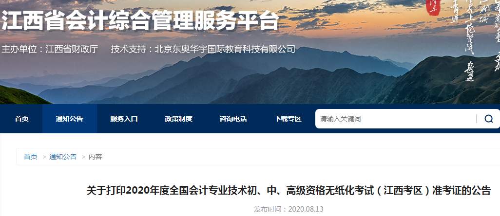 2020年江西撫州初級(jí)會(huì)計(jì)職稱準(zhǔn)考證打印入口:全國(guó)會(huì)計(jì)資格評(píng)價(jià)網(wǎng)