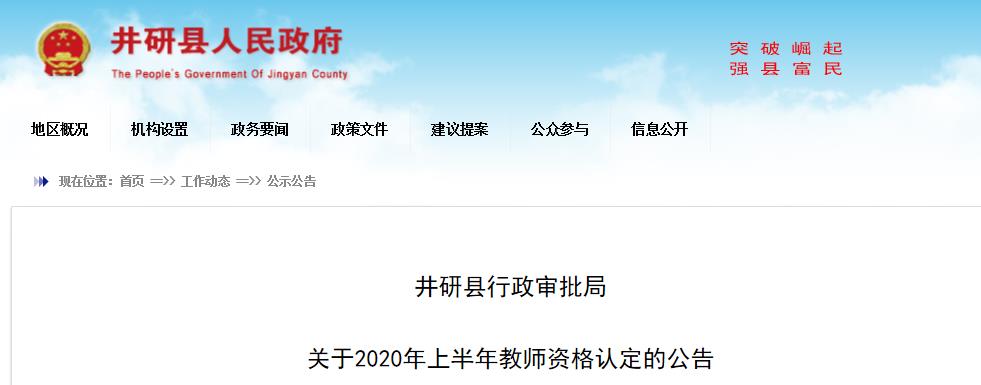 從井研縣人民政府獲悉,2020上半年四川省樂山市井研縣教師資格認定公告已公布,網(wǎng)上申報時間為5月11日至8月20日,具體詳情如下: