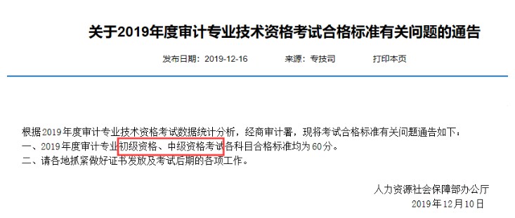 根據(jù)2019年度審計(jì)專業(yè)技術(shù)資格考試數(shù)據(jù)統(tǒng)計(jì)分析,經(jīng)商審計(jì)署,現(xiàn)將考試合格標(biāo)準(zhǔn)有關(guān)問(wèn)題通告如下: