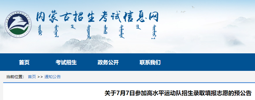體育高考頻道從內(nèi)蒙古招生考試信息網(wǎng)了解到,2023年內(nèi)蒙古高水平運(yùn)動(dòng)隊(duì)招生錄取志愿填報(bào)時(shí)間已公布,具體如下: