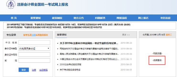 注會考生答卷由中注協(xié)組織集中評閱,考試成績經(jīng)財(cái)政部注冊會計(jì)師考試委員會認(rèn)定后發(fā)布??忌捎?span>2019年12月下旬登錄網(wǎng)報(bào)系統(tǒng)(中國注冊會計(jì)師協(xié)會http://cpaexam.cicpa.org.cn/)查詢成績并下載打印成績單。