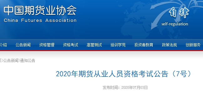 2020年期貨從業(yè)人員資格考試公告(7號)