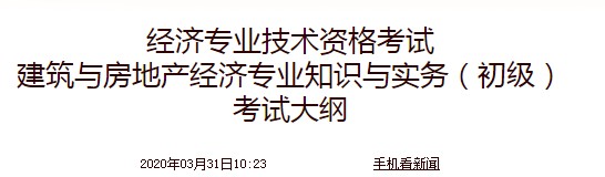 中國人事考試網(wǎng)發(fā)布“2020年初級(jí)經(jīng)濟(jì)師《建筑與房地產(chǎn)專業(yè)知識(shí)與實(shí)務(wù)》考試大綱”供大家參考,希望對(duì)考生有幫助!