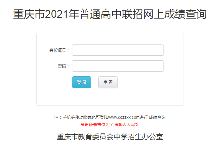考生可登錄www.cqzzxx.com,輸入準考證號和中考填報志愿時設置的密碼,查詢中考成績。