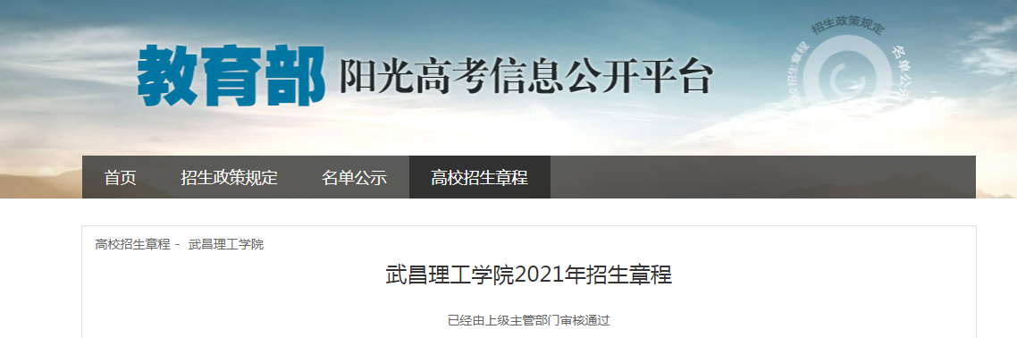 從教育部陽(yáng)光高考信息公開(kāi)平臺(tái)獲悉,武昌理工學(xué)院2021年招生章程已公布,具體詳情如下: