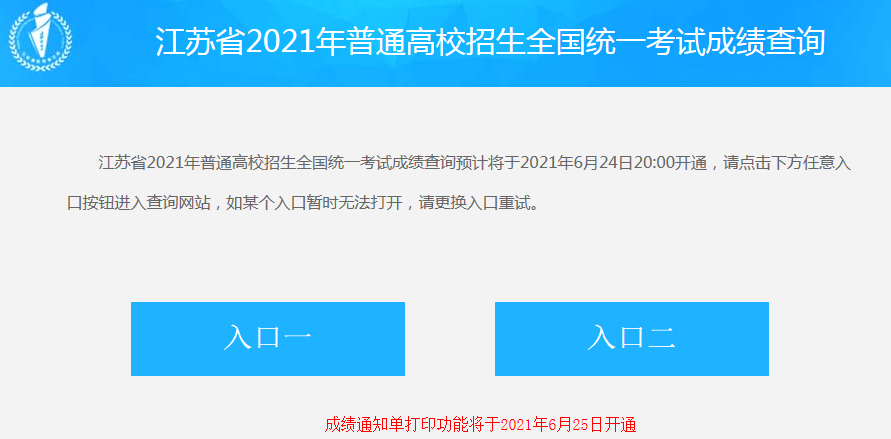 從江蘇省教育考試院獲悉,2021年江蘇高考成績查詢?nèi)肟谝验_通,6月24日20:00起可查分,具體詳情如下: