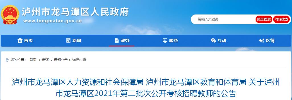 2021四川瀘州龍馬潭區(qū)第二批次考核招聘教師48人,報名時間:2021年7月3日(上午9:00—11:30,下午14:30—17:30)?,F(xiàn)將招聘公告原文發(fā)布如下: