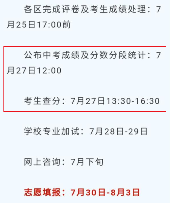 延慶中考頻道根據(jù)北京教育考試院公布的《2020年北京中考招生考試時間安排》的通知了解到,2020年北京延慶中考成績公布時間已確定,北京延慶中考成績將于7月27日公布,具體如下: