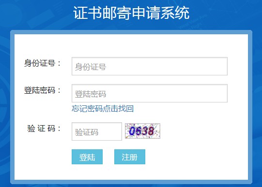 1、郵寄登錄地址:http://221.214.94.16:8081/yjsq/v1/index.Aspx。請廣大考生點(diǎn)擊下列圖片進(jìn)入證書郵寄系統(tǒng)