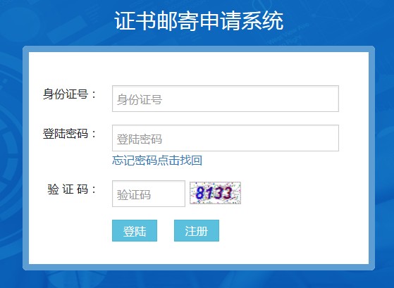 郵寄領(lǐng)取的合格考生,請如實(shí)填寫郵寄確認(rèn)信息,經(jīng)工作人員確認(rèn)后,即安排郵寄(注:通過中國郵政EMS進(jìn)行郵寄,咨詢電話:8801183)。郵寄信息確認(rèn)網(wǎng)址:http://221.214.94.16:8081/yjsq/index.aspx,考生可點(diǎn)擊下列圖片進(jìn)行證書郵寄系統(tǒng):