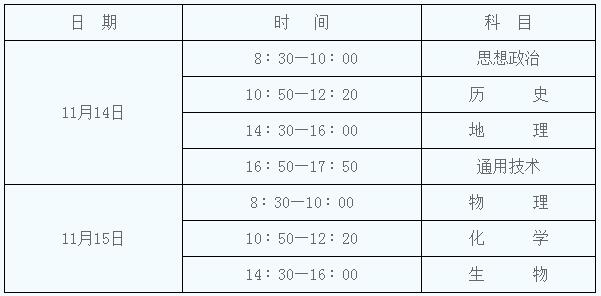 本次開考思想政治、歷史、地理、通用技術、物理、化學、生物等7科,各科考試內容及形式將依據(jù)《陜西省普通高中學業(yè)水平考試說明》執(zhí)行??荚嚂r間安排如下: