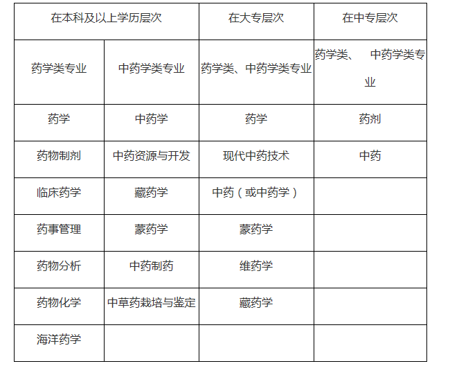 報(bào)考條件中要求的“藥學(xué)類、中藥學(xué)類專業(yè)”,按照國務(wù)院學(xué)位委員會(huì)、教育部印發(fā)的《學(xué)位授予和人才培養(yǎng)學(xué)科目錄設(shè)置與管理辦法》《普通高等學(xué)校高等職業(yè)教育(??疲I(yè)設(shè)置管理辦法》和《學(xué)位授予和人才培養(yǎng)學(xué)科目錄》《普通高等學(xué)校本科專業(yè)目錄(2012年)》《普通高等學(xué)校高等職業(yè)教育(??疲I(yè)目錄(2015年)》等規(guī)定,對(duì)照學(xué)科目錄來界定。