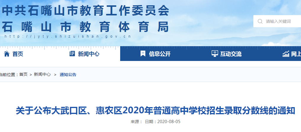 現(xiàn)將我市2020年大武口區(qū)、惠農(nóng)區(qū)公辦普通高中學(xué)校招生統(tǒng)一錄取最低控制分?jǐn)?shù)線和市轄區(qū)民辦學(xué)校普通高中招生錄取資格線公布如下: