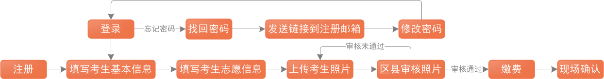 對(duì)未完成網(wǎng)上預(yù)報(bào)名而直接前往確認(rèn)點(diǎn)報(bào)名的考生,區(qū)縣招考機(jī)構(gòu)應(yīng)為其網(wǎng)上預(yù)報(bào)和網(wǎng)上繳費(fèi)提供支持,最終完成現(xiàn)場(chǎng)確認(rèn)。