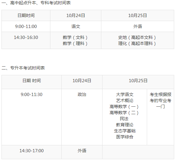 專升本統(tǒng)考科目為政治、英語和專業(yè)基礎課,共三科。專業(yè)基礎課根據(jù)各學科門類的特點設置8門(見附表一),由招生院校按專業(yè)的需要規(guī)定考生應試其中一門。