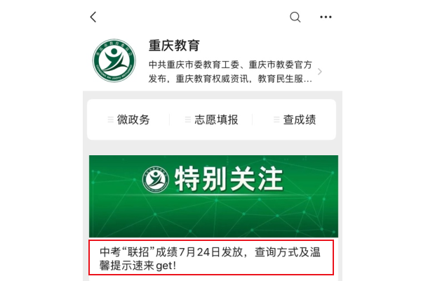 從重慶市教育委員會(huì)獲悉,2020年重慶中考成績(jī)查詢?nèi)肟谟?月24日12時(shí)正式開通了,具體詳情如下: