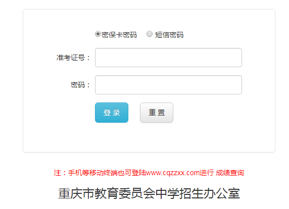 考生可登錄www.cqzzxx.com,輸入準(zhǔn)考證號(hào)和中考填報(bào)志愿時(shí)設(shè)置的密碼,查詢中考成績(jī)。