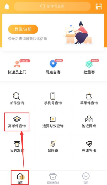 ②、打開應用,在【首頁】中點擊【高考件查詢】