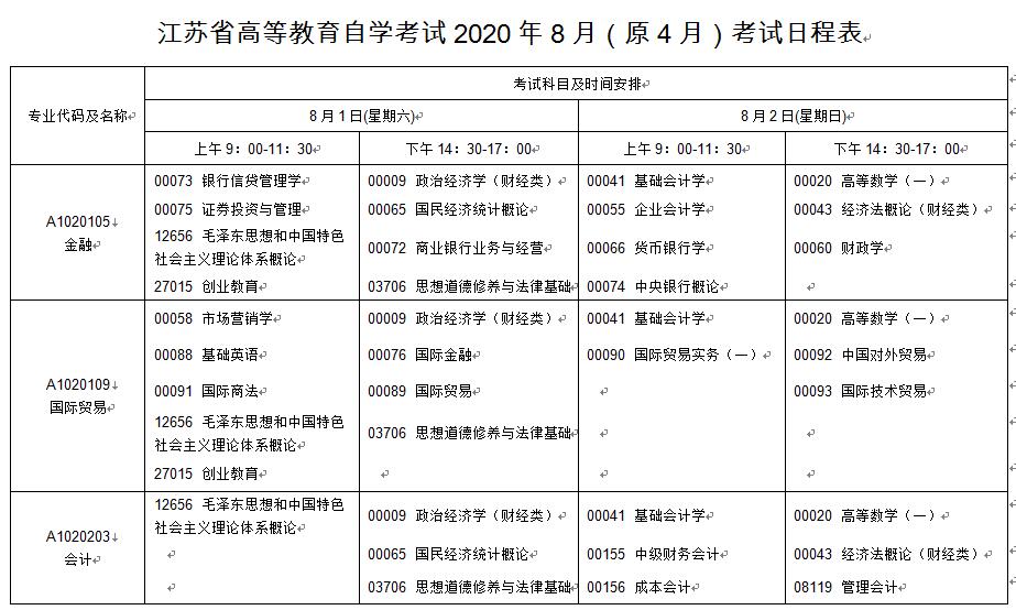 點(diǎn)擊查看完整版:江蘇省高等教育自學(xué)考試2020年8月(原4月)考試日程表