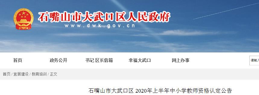 從石嘴山市大武口區(qū)人民政府獲悉,2020上半年寧夏石嘴山市大武口區(qū)中小學(xué)教師資格認(rèn)定公告已公布,申報(bào)時(shí)間為6月7日-6月19日,具體詳情如下: