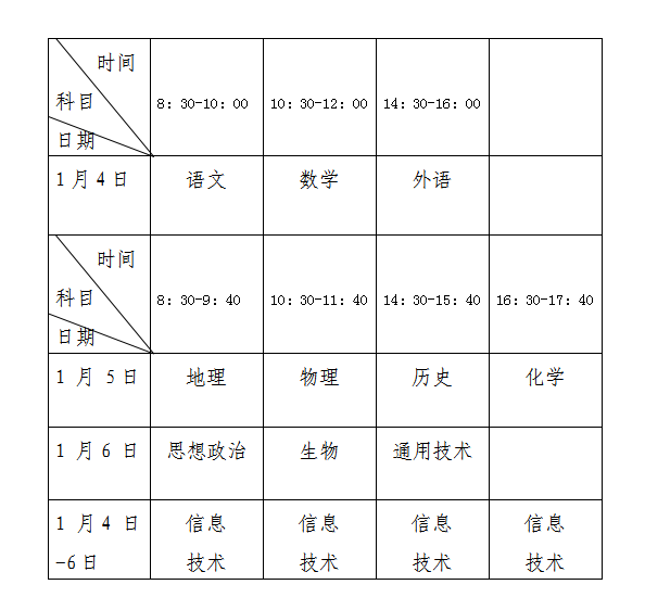 2020年1月福建省普通高中學業(yè)水平合格性考試時間安排表
