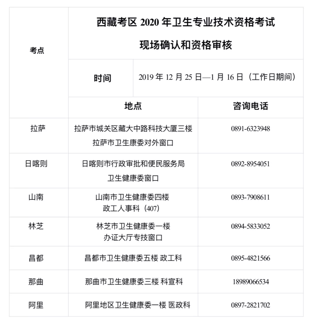 從中國(guó)衛(wèi)生人才網(wǎng)獲悉,2020年西藏衛(wèi)生專業(yè)技術(shù)資格考試報(bào)名通知已公布,報(bào)名時(shí)間為2019年12月24日-2020年1月13日,具體詳情如下:
