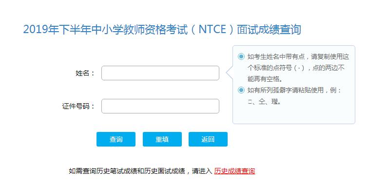 點擊進入>>>2019下半年湖南教師資格證面試成績查詢入口【已開通】
