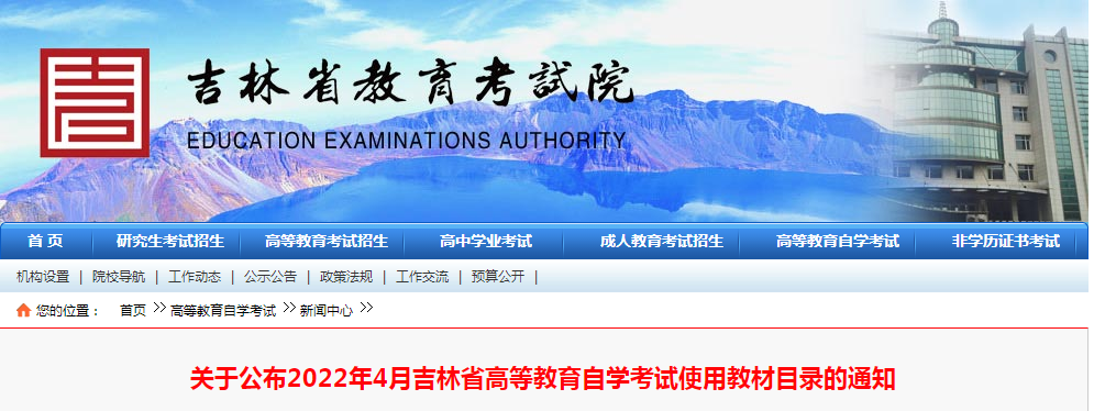 根據(jù)吉林省教育考試院《關(guān)于公布2022年4月吉林省高等教育自學(xué)考試課程安排的通知》(吉教考字[2021]89號(hào))精神,現(xiàn)將2022年4月吉林省高等教育自學(xué)考試課程使用教材目錄通知如下。