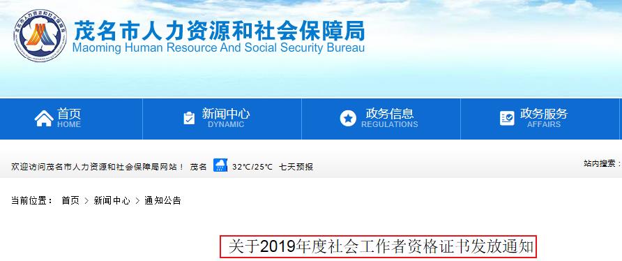 從茂名市人力資源和社會保障局獲悉,2019年廣東茂名市社會工作者資格證書發(fā)放通知已公布,請相關(guān)人員仔細(xì)閱讀,具體詳情如下: