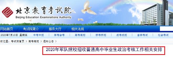 7月30日下午,考生可登錄北京教育考試院官方網(wǎng)站(www.bjeea.cn)查詢軍檢最終結(jié)論。