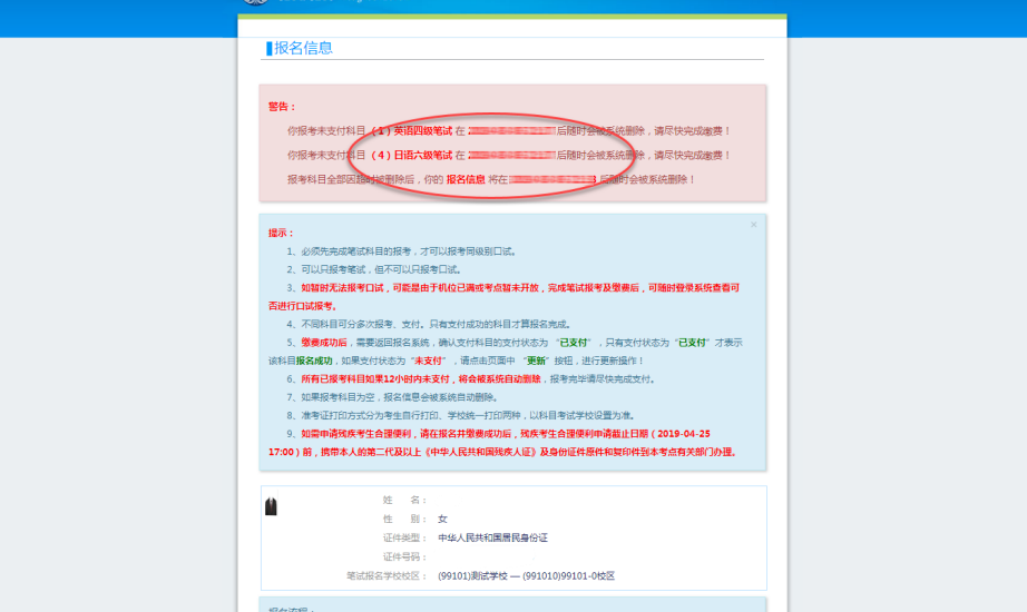 如果保存12小時后,報名信息下無任何科目,系統(tǒng)將會自動將報名信息刪除,到時需要重新驗證學(xué)籍進(jìn)行報考。