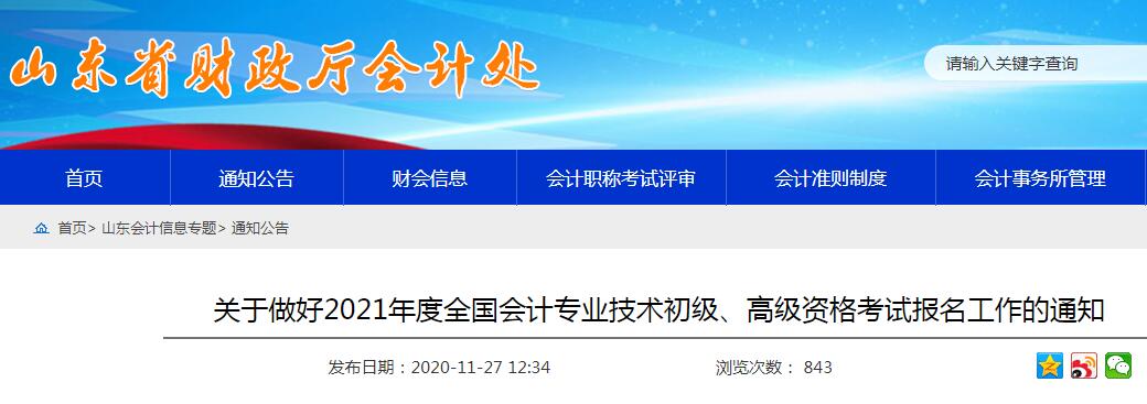 2021年山東初級會計職稱報名入口:全國會計資格評價網(wǎng)
