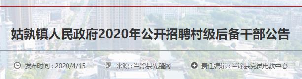 從當涂先鋒網(wǎng)獲悉,2020年安徽馬鞍山當涂縣姑孰鎮(zhèn)人民政府招聘村級后備干部24人,報名時間:4月16日-22日,官方公告原文如下: