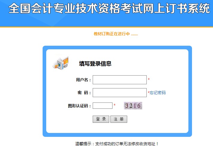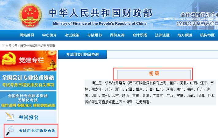 2018年起,部分省份不再統(tǒng)一征訂考試大綱和教材,報名過程中考生可通過全國考試教材征訂平臺進行教材訂購及繳費,由出版社直接將教材郵寄到考生預留的收件地址,若需要訂購考試大綱和教材的考生,可自行前往書店購買教材或在全國會計資格評價網(wǎng)(網(wǎng)址:http://kzp.mof.gov.cn/)——網(wǎng)上報名訂書及查詢欄目進行教材的征訂。