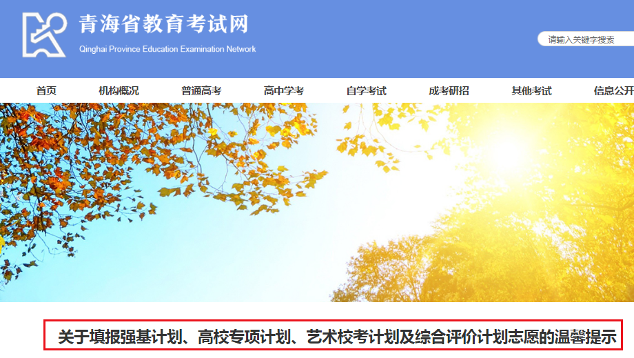 從青海省教育考試網(wǎng)了解到,關(guān)于填報強基計劃、高校專項計劃、藝術(shù)校考計劃及綜合評價計劃志愿的溫馨提示已發(fā)布,據(jù)悉強基計劃、綜合評價計劃、藝術(shù)校考計劃由考生填報紙質(zhì)志愿表后交考區(qū)招辦;高校專項計劃則是由考生在網(wǎng)上統(tǒng)一填報志愿?,F(xiàn)將有關(guān)事宜通知如下: