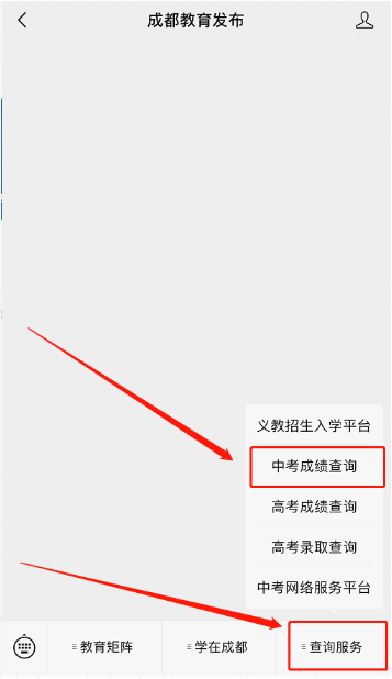 點(diǎn)擊下方“查詢服務(wù)”,在分欄選擇“中考成績查詢”。