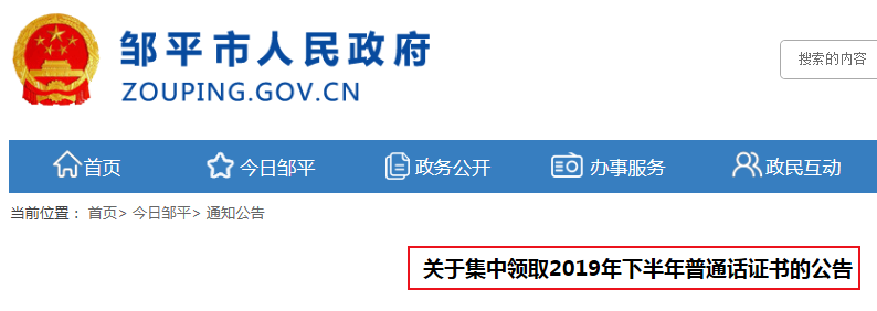 從鄒平市人民政府獲悉,2019下半年山東鄒平市普通話證書領(lǐng)取公告已公布,證書領(lǐng)取時(shí)間為1月8日,具體詳情如下:
