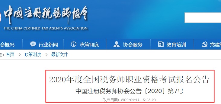 西藏2020年稅務(wù)師考試報(bào)名入口:中國注冊稅務(wù)師協(xié)會