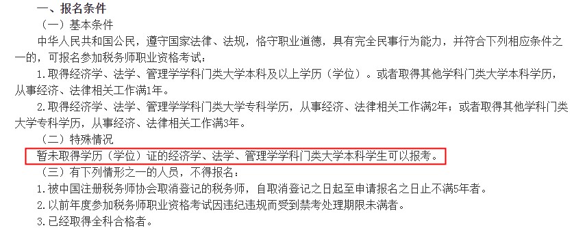 暫未取得學(xué)歷(學(xué)位)證的經(jīng)濟(jì)學(xué)、法學(xué)、管理學(xué)學(xué)科門類大學(xué)本科學(xué)生可以報(bào)考。
