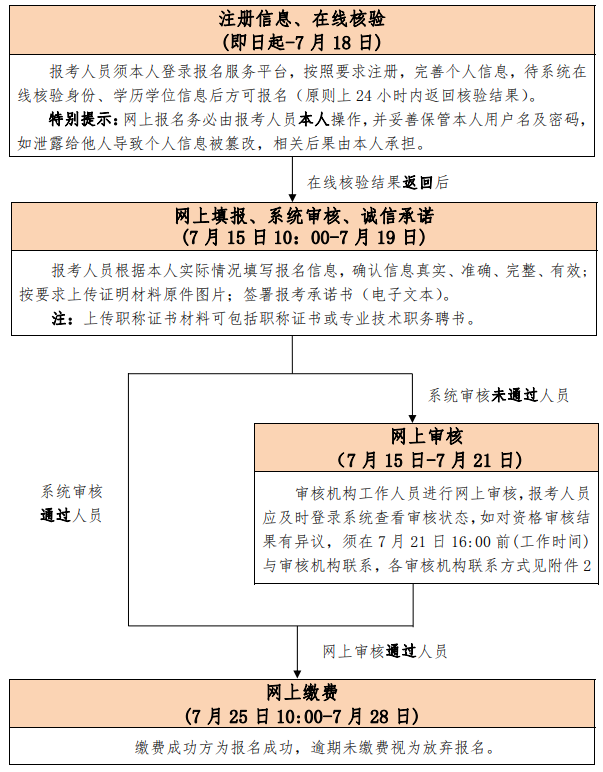 報考人員須登錄北京市人力資源和社會保障局官方網(wǎng)站“人事考試服務(wù)頻道”(網(wǎng)址:http://rsj.beijing.gov.cn/ ywsite/bjpta/,以下簡稱人事考試服務(wù)頻道),進(jìn)入“考試報名” 欄目,點擊本項考試報名鏈接進(jìn)行報名,網(wǎng)上填報信息并通過網(wǎng)上審核的人員方可進(jìn)行網(wǎng)上繳費,報名流程詳見附件1。